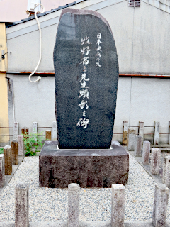 境内に立派な石碑が建っている。これは日本初のプロの監督(職業映画監督)の牧野省三氏を顕彰するもの。日本映画の基礎を築いたとされる。