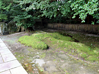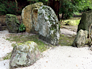 苔が大分覆っており、文字はかなり読みにくい。この石組も重森三令による。