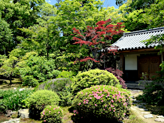 庭園は多数あり、書院前の一面の苔庭、本堂奥の池泉鑑賞式庭園、巨大なシャクナゲの中庭など見所は尽きない。