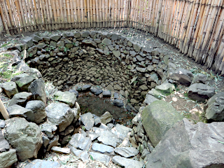 長屋門を入り、玄関前の庭に小野小町の歌碑が置かれている。