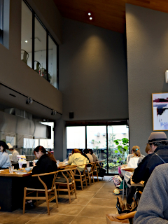レストランは「CAFE & RESTAURANT 鶏と亀」といい、高い天井と明るい採光で開放感に溢れる。