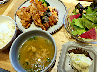 鶏スープも旨味があり、亀岡のコシヒカリ、地野菜の色鮮やかなサラダに小鉢も丁寧に作られ、手抜き無しのハイレベルな美味しさ。