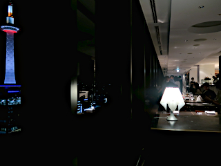高層ビルが建てられない京都において、街を見下ろす景色は貴重だ。京都タワーも目の前に見える。特に夜景は最高である。